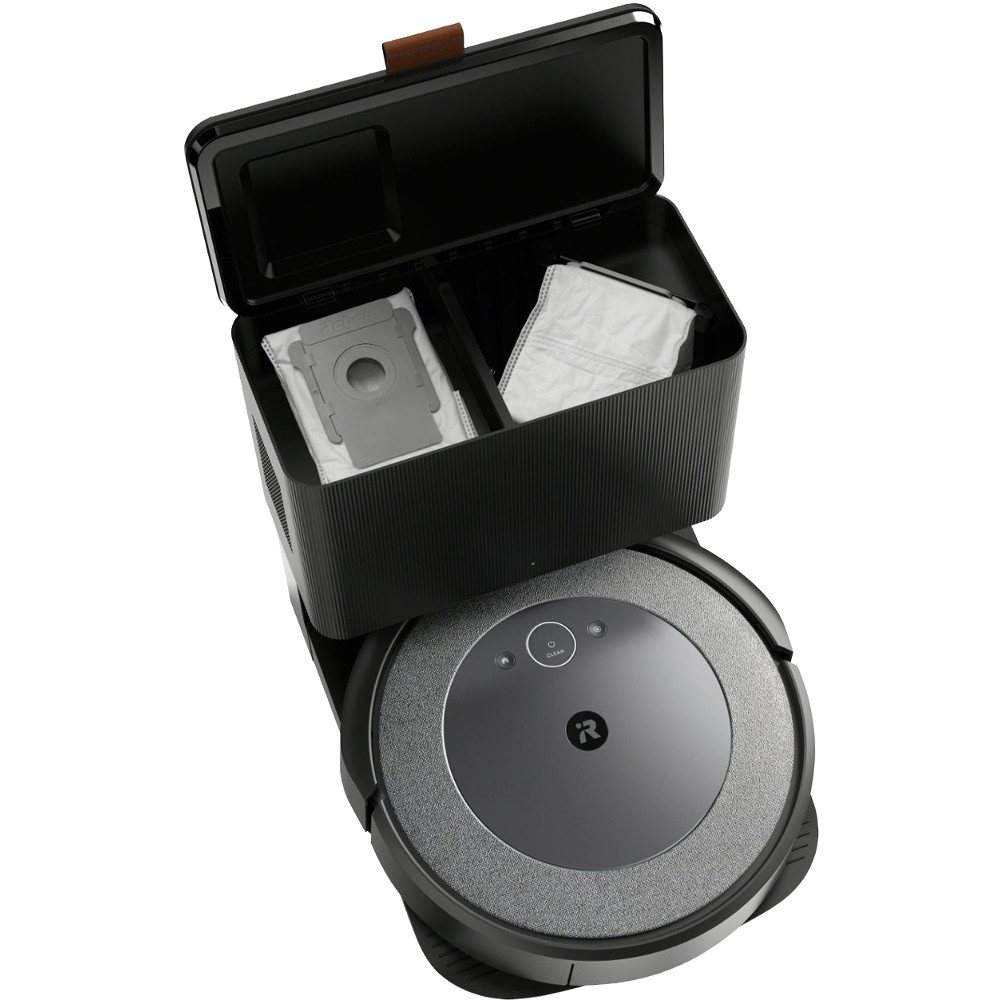 Der Roomba Combo i5+ Saug- und Wischroboter entleert seinen Standard-Staubauffangbehälter bis zu 60 Tage lang automatisch in die Clean Base Automatische Absaugstation mit Anti-Allergen Beuteln, die Partikel bis zu 7 Mikrometer Größe auffangen.